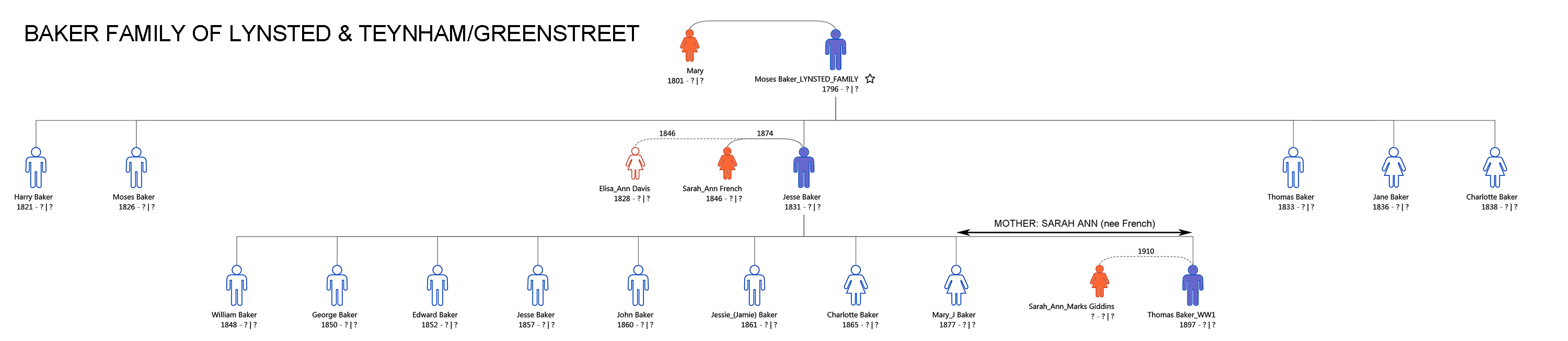 Untangling the Baker families. From our researches, it looks like there may be no familial links between these local "Baker" families (going back to grandfathers in both cases). Baker is, after all, quite a common name.